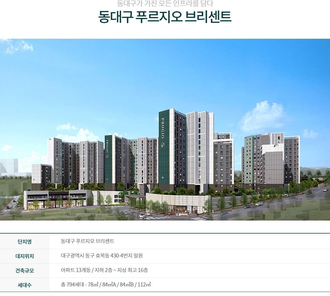 SPECIAL 01 동대구 푸르지오 브리센트 프리미엄 랜드마크의 품격 도심 속 새로운 주거 중심, 브랜드 가치와 품격을 동시에 갖춘 랜드마크 단지입니다. 더 알아보기 SPECIAL 02 더 빠르게, 더 가깝게 연결되는 교통 프리미엄 확장되는 교통망과 생활 인프라가 만나는 중심 입지, 미래 가치를 앞서갑니다. 더 알아보기 SPECIAL 03 스마트 분양 혜택과 합리적 금융 프로그램 다양한 금융 혜택과 맞춤형 분양 조건으로 초기 부담을 줄인 합리적 기회입니다. 더 알아보기 SPECIAL 04 세심한 설계, 완성도 높은 주거공간 동대구 푸르지오 브리센트 효율적인 공간 구성과 쾌적한 환경으로 일상을 더욱 특별하게 만듭니다. 더 알아보기 SPECIAL 05 미래가치와 개발 호재의 중심에서 동대구 푸르지오 브리센트 발전 가능성과 다양한 개발 호재를 품은 핵심 입지로 높은 투자 가치를 기대할 수 있습니다. 더 알아보기 SPECIAL 01 동대구 푸르지오 브리센트 프리미엄 랜드마크의 품격 도심 속 새로운 주거 중심, 브랜드 가치와 품격을 동시에 갖춘 랜드마크 단지입니다. SPECIAL 02 더 빠르게, 더 가깝게 연결되는 교통 프리미엄 확장되는 교통망과 생활 인프라가 만나는 중심 입지, 미래 가치를 앞서갑니다. SPECIAL 03 스마트 분양 혜택과 합리적 금융 프로그램 다양한 금융 혜택과 맞춤형 분양 조건으로 초기 부담을 줄인 합리적 기회입니다. SPECIAL 04 세심한 설계, 완성도 높은 주거공간 동대구 푸르지오 브리센트 효율적인 공간 구성과 쾌적한 환경으로 일상을 더욱 특별하게 만듭니다. SPECIAL 05 미래가치와 개발 호재의 중심에서 동대구 푸르지오 브리센트 발전 가능성과 다양한 개발 호재를 품은 핵심 입지로 높은 투자 가치를 기대할 수 있습니다.